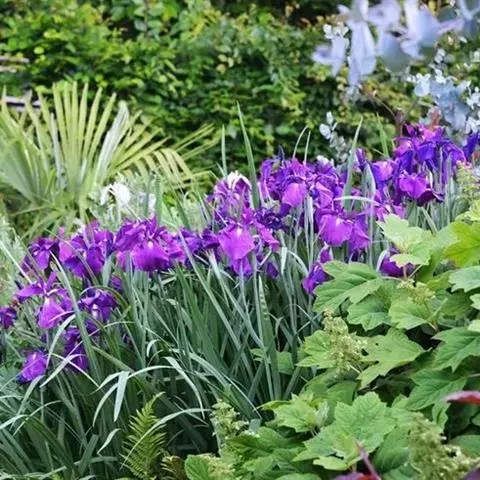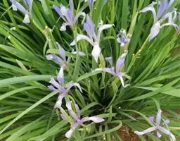双色野鸢尾为多年生草本植物,叶子呈剑状淡绿色。…
