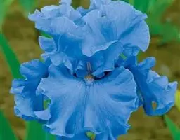 扇形鸢尾,多年生草本,高达100cm。根茎横生,粗壮,直径达1cm,黄白色,节明显;须根分枝较多,黄白色。地上茎扁圆柱形,节明显。叶黄绿色,集生茎顶,基部套叠,排成扇面状,叶片宽剑形,长50-70cm,宽5-7cm,先端渐尖,基部鞘状,花茎高30-50cm,有纵棱和浅沟;总状圆锥花序,有5-7分枝,每分枝处有3-5苞片,内含2-4朵花;花蓝紫色,直径7.5-8cm,花被管长约2cm,外花被裂片倒卵形,有深紫色的斑纹及条纹,边缘波状皱褶,中肋上具黄色鸡冠状附属物,内花被裂片倒披针形或狭倒卵形;雄蕊3,花药黄色;花柱分枝3,淡蓝色,花瓣状;子房下位,纺锤形,长7-8mm。蒴果椭圆状,长2.8-3.5cm,直径1.3-1.5cm,先端具短尖,有6条棱;种子扁平,半圆形,棕褐色,直径约4mm。花期4月,果期5-8月。