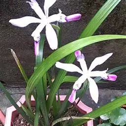 亮叶鸢尾为常绿多年生草本植物。叶面光滑、亮绿色,花茎扁平叶状。原产于巴西。