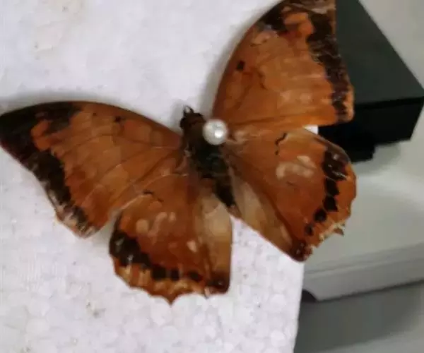 将羽化后的成虫放入室外饲养笼内饲养,笼内要有栽培蜜源植物,经常保持鲜花盛开,同时注意添加蜂蜜、糖水、清水、果汁液。成虫羽化时从胸背部位开裂,头和足依次伸出,然后胸腹部随之而出。整个羽化过程身体不停地蠕动,此时不可触及蛹与成虫,否则可导致虫体的残疾或羽化失败。成虫钻出蛹壳的过程约18min,则自行悬挂在树枝上2-3h,不久,由肛门排出蛹便,便可振翅飞翔,羽化后的成虫经过一段时间飞行觅食后完成交尾、产卵。选择完整的成虫即可展翅制成标本。