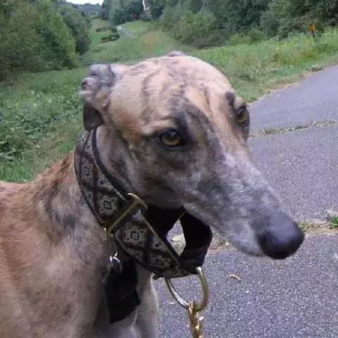 【颈部,背线和躯干】颈部呈拱形,纤细,长度适中,往后颈部逐渐变粗,与肩部连接处平滑,肩部倾斜。颈部过细为缺陷。略呈拱形,粗壮,背部扁平或拱起均应淘汰。胸深,在前肢之间的部位较窄,前胸轮廓清晰.肋骨稍扩张,但在胸下部变平,使前肢运动灵活。腹部折起、呈拱形。尾巴像鞭子,长度不超过肘关节,尾根较粗,往尾尖逐渐变细,尾巴向上稍弯曲,但向上不会超过背部。