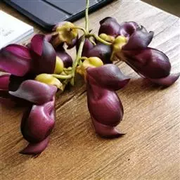 花单生或2~3朵簇生于叶腋;苞片狭卵形,长约4毫米,宽约1.3毫米,外面散生贴伏柔毛;花梗长3~8毫米,结果时延长达13毫米,全部或顶部有开展柔毛;花萼长约3毫米,密被白色长柔毛,5深化裂,裂片狭披针形,较萼筒长;花冠紫红色,与萼近相等,旗瓣倒心形,基部渐狭,具长瓣柄,翼瓣椭圆形,具短瓣柄,龙骨瓣略呈镰刀形,较冀瓣长,弯曲,具长瓣柄;雄蕊二体;雌蕊长约4毫米,子房线形,多少被毛,花柱内弯,无毛。