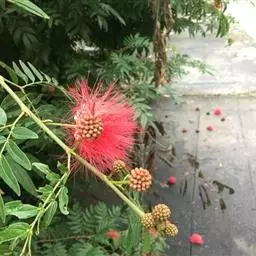 朱缨花,豆科朱缨花属的多年生木本植物,枝条扩展,小枝褐色;叶片呈卵状披针形;头状花序腋生,…