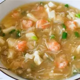 海鲜汤是一道汉族特色的美味海鲜汤类,制作比较简单,用料较多,制作原料主要有有腐竹、中虾、带子等,…