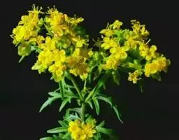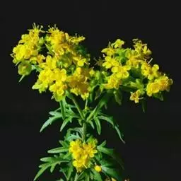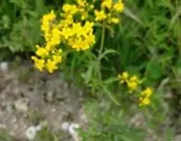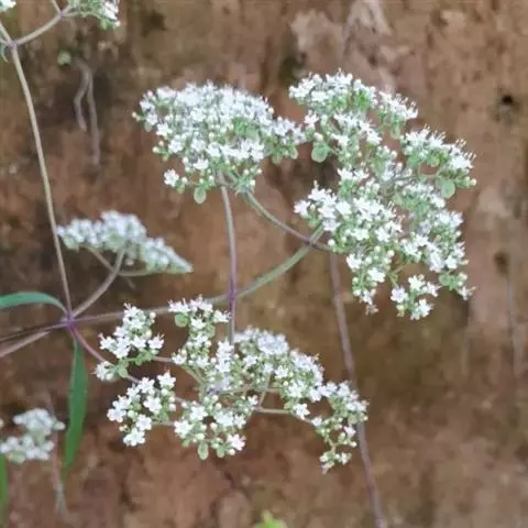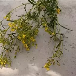 糙叶败酱( Patrinia rupestris Juss.subsp.scabra H.J.Wang),败酱科植物,多年生草本,茎丛生,茎上部多分枝,叶对生,裂片倒披针形、狭披针形或长圆形,聚伞花序顶生,呈伞房状排列,花小,黄色,花冠合瓣,果实翅状,卵形或近圆形,种子位于中央。