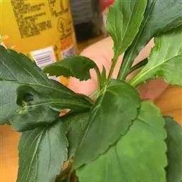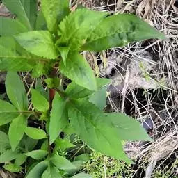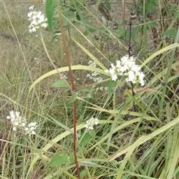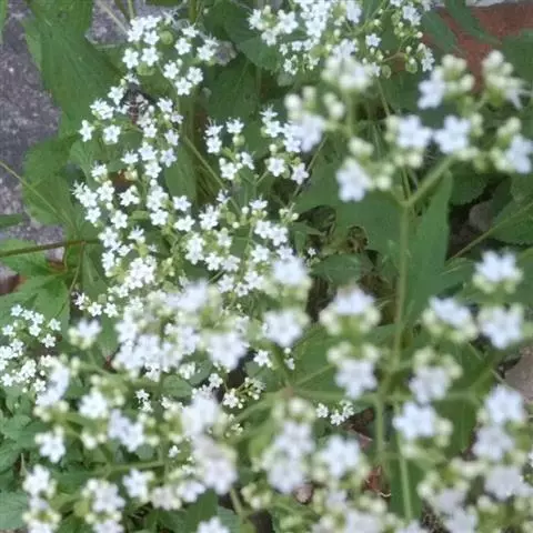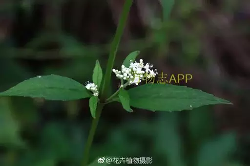 性状:一年生草本, 高达1米, 茎直立, 全株初具倒生白色粗毛, 后渐光滑, 仅留少数于节处, 上部少分枝.叶对生, 几无柄, 叶片狭椭圆形, 两面均具粗毛, 先端长尖或尖, 边缘具粗锯齿, 基部窄狭, 下延并抱茎.花白色。
