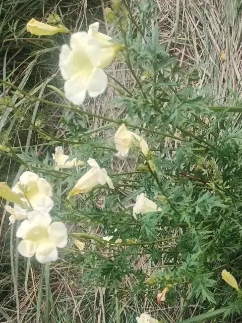 硬骨凌霄 Spach)是紫葳科硬骨凌霄属的多年生常绿木质藤本植物。茎多分枝;枝带绿褐色;叶对生,…