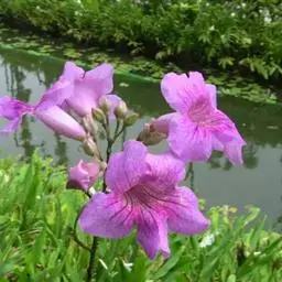紫芸藤,别名:非洲凌霄,原产于非洲的常绿攀援木质藤本植物。