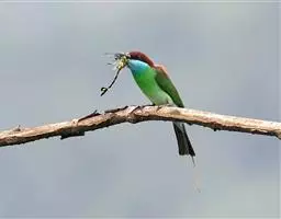 蓝颊蜂虎:是蜂虎科、蜂虎属的鸟类,共有2个亚种。体长27-33厘米,翼展46-49厘米,…