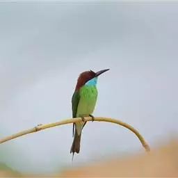 栗喉蜂虎是蜂虎科蜂虎属的鸟类。有热带鸟类羽毛艳丽的特征:喉部是栗红色的,黑色的过眼纹,…