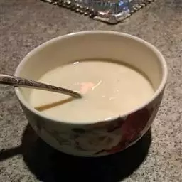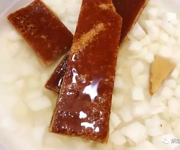 7、继续不断搅拌使糖完全融化后,分次加入荤油。搅匀;