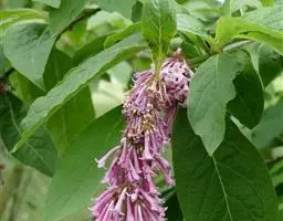 喜光,喜土壤湿润而排水良好,耐寒,可以庭院观赏、丛植。单叶对生,椭圆形,有光泽,高可达5米以上。喜光,多散生于林缘、溪流两岸、山谷平地。圆锥花序顶生,长达25cm,是暴马丁香的2倍;花紫红色,鲜艳浓香;花冠漏斗形,4裂;朔果长圆形,是庭院绿化极好的观赏树种。