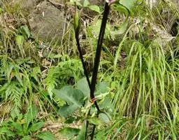 根颈粗短,有环纹,上端存留有枯鞘纤维;根圆柱状,末端渐细,通常有少数侧根,主根径0.5-1.5厘米,灰色或灰褐色,木质化,质地坚实。茎直立或稍曲折,单一或自基部抽出2-3茎,粗壮,径0.3-1.2厘米,基部近圆柱形,下部以上有显著条棱,呈棱角状突起,沟棱一般宽而深,宽狭深浅不一,分枝,以上部分枝较多,下部光滑无毛,或于茎节处有短柔毛,髓部充实。