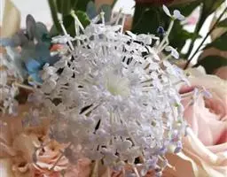 伞形花序多分枝,伞梗上端有短硬毛,复伞形花序直径2-7厘米;通常无总苞片,偶有1-5,线形或锥形,长2-4毫米,宽0.5-1毫米;伞辐8-20,稍不等长,内侧和基部有粗硬毛;小伞形花序有花15-30,花柄短;小总苞片8-14,线形或线状披针形,顶端渐尖,与花柄等长或稍短,边缘有毛;萼齿明显,三角形或披针状锥形;花瓣白色,宽椭圆形,顶端凹陷处小舌片内曲,背面中央有短毛;花柱基扁圆锥形,花柱长,开展,卷曲,子房密生短毛。分生果卵形,背腹略扁压,长2.5-3.5毫米,宽约1.5毫米,5棱显著,侧棱比背棱稍宽,有短毛;每棱槽内有油管3-4,合生面油管6。花期7-9月,果期8-10月。