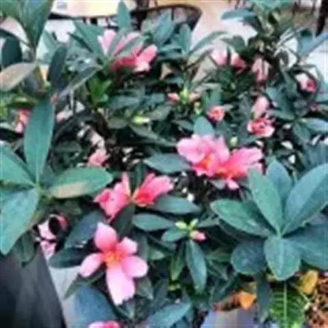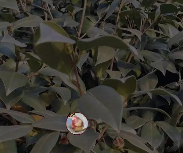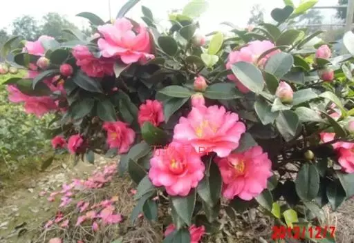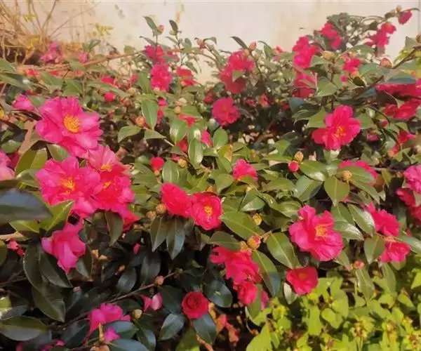 该种叶似茶,花如梅而得名。茶梅,体态秀丽、叶形雅致、花色艳丽、花期长(自11月初开至翌年3 月),树型娇小、枝条开放、分枝低、易修剪造型,适宜盆栽、庭院、阳台、宾馆等理想的盆栽名花。