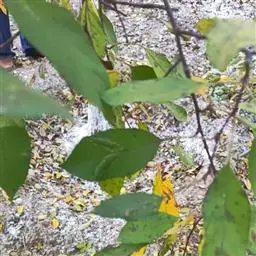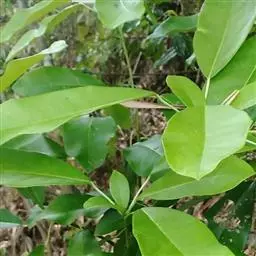 叶革质,狭卵状椭圆形、披针形、狭倒卵状椭圆形,长7-12(14)厘米,宽2-4厘米,先端渐尖或尾状渐尖,基部阔楔形或圆,上面深绿色,有光泽,下面苍白色,被白色长平伏毛;中脉凹入,常残留有白色毛,侧脉纤细,每边8-12条,网脉细密,两面稍凸起;叶柄长1-1.5(2.5)厘米,被平伏白色毛;托叶痕长为叶柄长之半或过半。