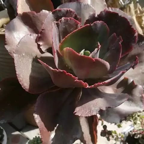 黑王子锦是景天科拟石莲花属的多年生肉质草本植物,是多肉植物的一种,为黑王子的锦化品种,较为稀有。