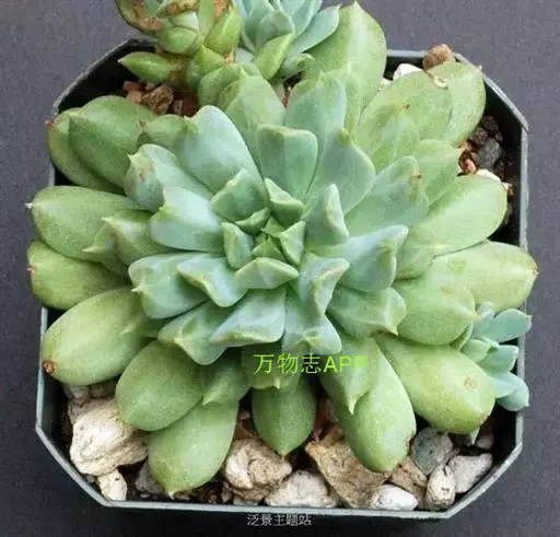 吉娃莲,景天科拟石莲花属,别名:吉娃娃,吉娃莲,植株小型,无茎的莲座叶盘非常紧凑。卵形叶较厚,带小尖,…