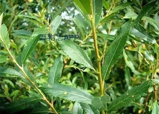 灌木或小乔木,高1-5米。树皮灰色或灰褐色;一年生枝褐绿色,灰绿色或灰棕色,无毛,有光泽。芽卵形或披针形,披针状长圆形,发粘,有光泽。叶革质,宽披针形,卵状长圆形或椭圆状披针形,长3-13厘米,宽2-4厘米,先端渐尖,基部钝或楔形,上面深绿色,有光泽,下面淡绿色,无毛,边缘有腺齿;叶柄长0.2-1.4厘米,无毛,上端边缘具腺点;托叶长圆形或宽卵形,或脱落。