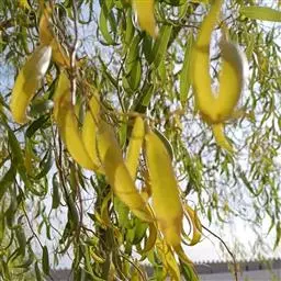 五蕊柳,是柳属灌木或小乔木,高1-5米,树皮灰色或灰褐色,一年生枝褐绿色,灰绿色或灰棕色,无毛,有光择,芽卵形或披针形,披针状长圆,发粘,有光泽。木材可制小农具或作柴薪用,树皮及叶均可提制栲胶,也是蜜源树种。