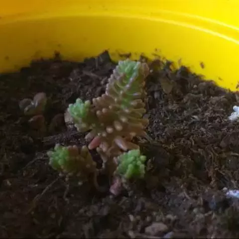 玉米石是景天科、景天属植物。多年生草本多浆植物。植株低矮丛生,多分枝。叶膨大成圆筒形、卵形或近小球形,…