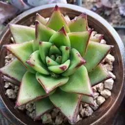 红缘莲花掌属蔷薇目、景天科植物,原产大西洋的加那利群岛。质厚,蓝绿色,被白霜,叶缘红褐色。聚伞花序,…