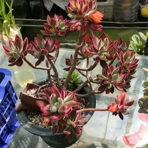 八千代是景天科,景天属多年生肉质植物。植株呈小灌木状,高可达30厘米,多分枝。…