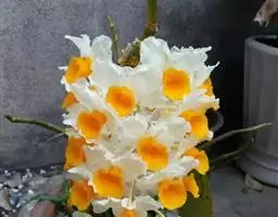 球花石斛,是兰科石斛属的多年生附生草本。茎直立或斜立,圆柱形,粗壮,基部收狭为细圆柱形,不分枝,…