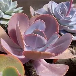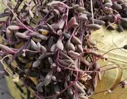 紫珍珠是景天科石莲花属的多年生肉质草本植物。植株中小型;叶片肉质,匙形,呈莲座状紧密排列;叶片粉紫色,…