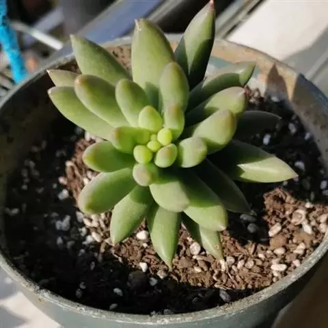 乙姬牡丹为景天科景天属多肉植物,有茎,叶互生,排列成莲座状,匙形,表面光洁,正面平坦,背面隆起,肉…