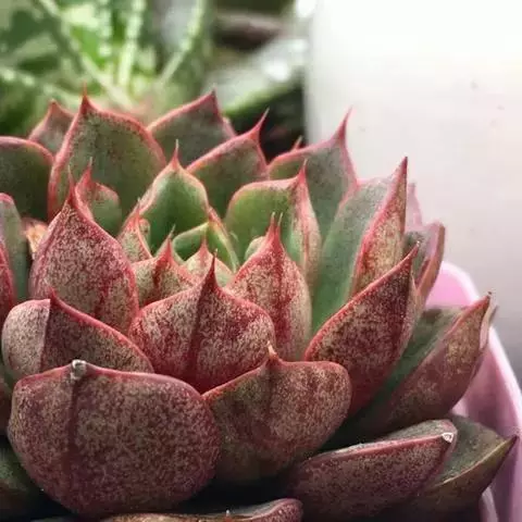 大和锦是景天科拟石莲花属的多肉植物。肉质叶排成紧密的莲座状,广卵形至散三角卵形,背面突起呈龙骨状,…