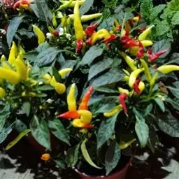 朝天椒茄科辣椒属一年或多年生草本植物;卵形;花通常单只生长于二分叉间,花梗直立,花稍俯垂,…