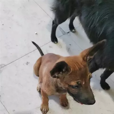 头部和耳朵的颜色呈棕褐色,耳朵的颜色较其他地方更深一些。头骨两侧有黑色的斑点是允许的。小腿到大腿,肘部和身体下面及胸部都呈棕褐色,并且经常延伸到肩部。身体侧面及上面一般为黑色或黑灰色。在黑色中混杂一点红色也可以。胸部的小白斑是个别变种的明显特征。
