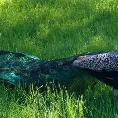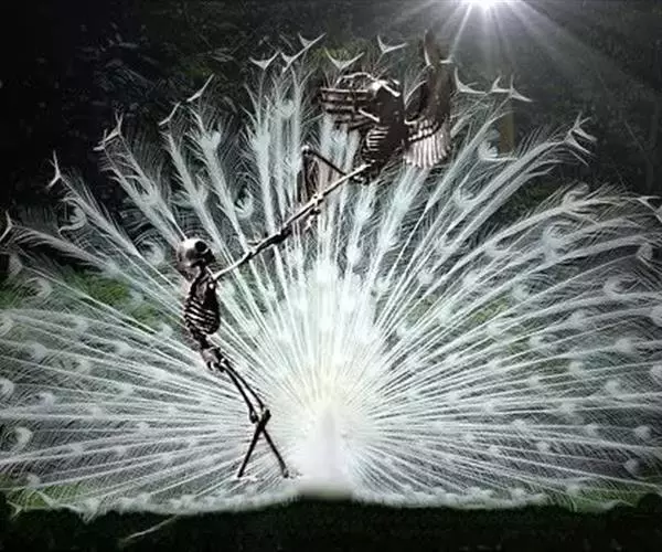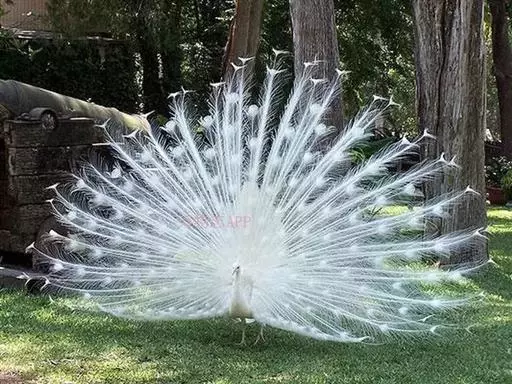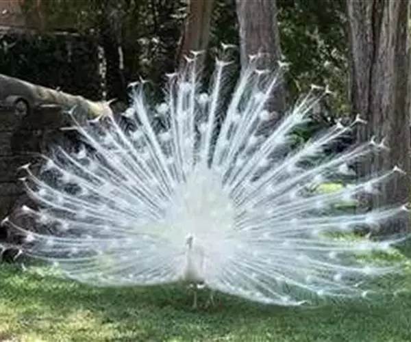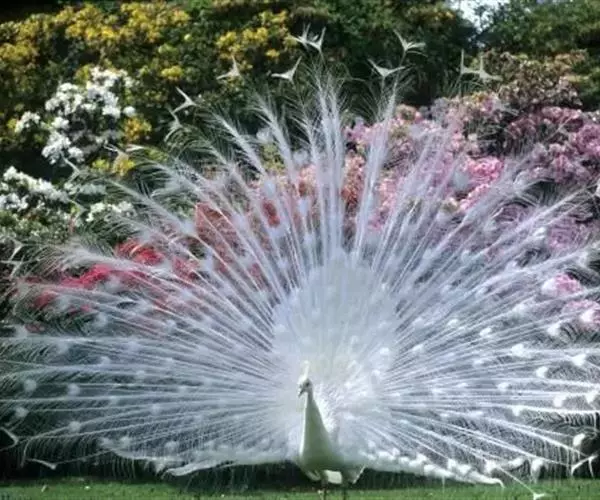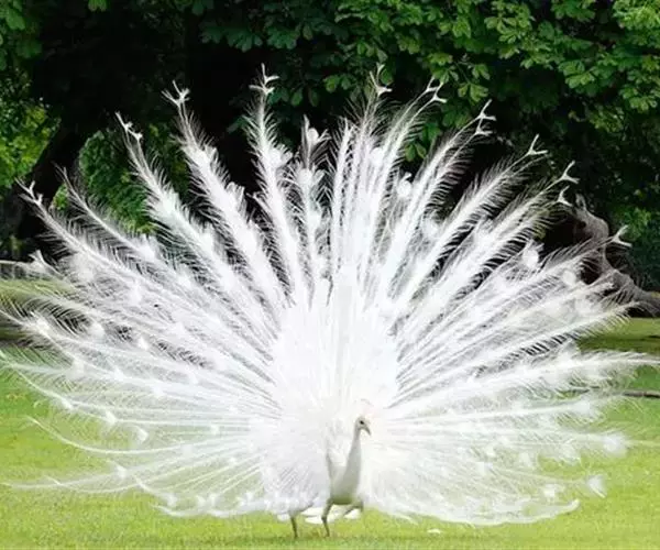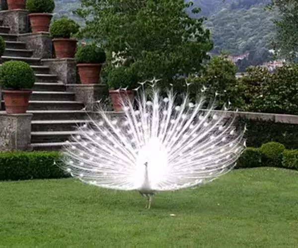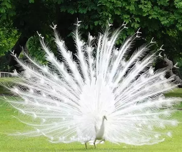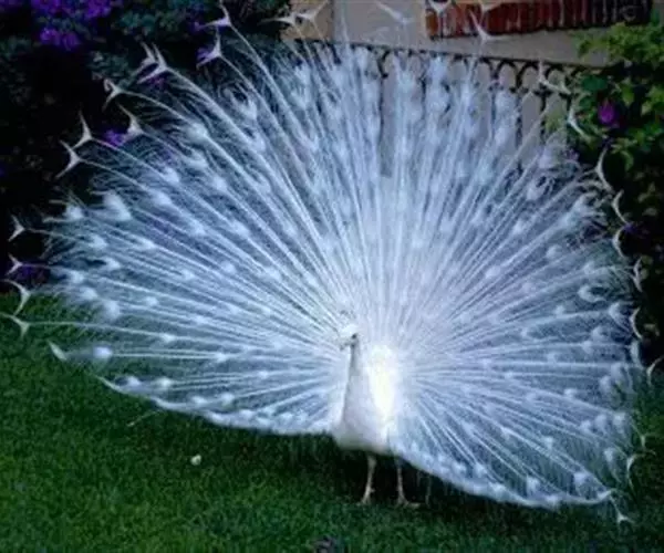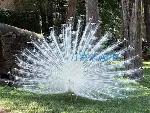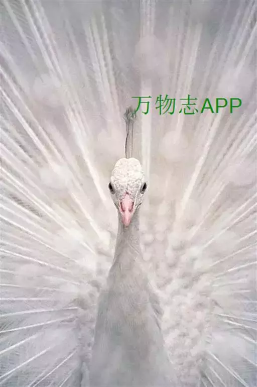 白孔雀,脊椎动物,鸟纲,雉科。其全身洁白无瑕,羽毛无杂色,眼睛呈淡红色