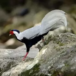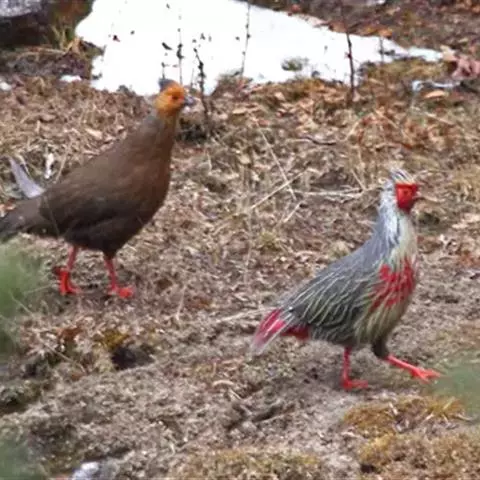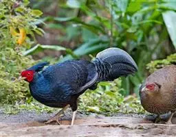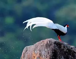 白颈长尾雉:大型鸡类,体长81厘米,体型大小和雉鸡相似。雄鸟头灰褐色,颈白色,脸鲜红色,其上后缘有…
