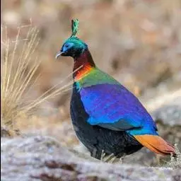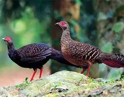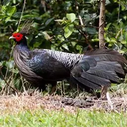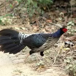 黑长尾雉大型鸡类,体长53~88厘米。雄较雌大。雄鸟通体紫蓝色,脸鲜红色,翅上有一条显著的白色翅斑…