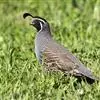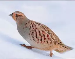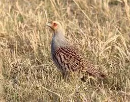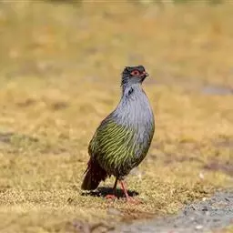 体大的灰褐色鹑类。胸灰色具黑色细纹。与相似种类四川雉鹑不同处在于栗色喉块外缘近白。有猩红色眼周裸皮。…