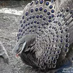 灰孔雀雉:雄鸟体长50-67厘米,体重456-710克;雌鸟体长33-52厘米,体重460-500克。…