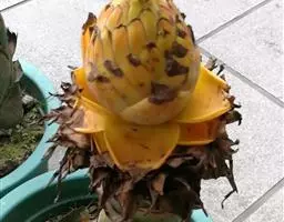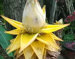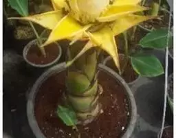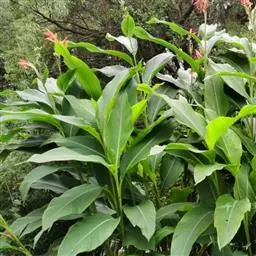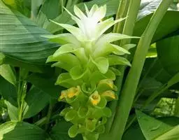 粉美人蕉是一种球根草本植物。根茎延长,株高1.5-2米;茎绿色。叶片披针形,长达50厘米,宽10-15厘米,顶端急尖,基部渐狭,绿色,被白粉,边绿白色,透明;总状花序疏花,单生或分叉,稍高出叶上;苞片圆形,褐色,花黄色,无斑点;萼片卵形,长1.2厘米,绿色;花冠管长1-2厘米;花冠裂片线状披针形,长2.5-5厘米,宽1厘米,直立,外轮退化雄蕊3,倒卵状长圆形,长6-7.5厘米,宽2-3厘米,全缘;唇瓣狭,倒卵状长圆形,顶端2裂,中部卷曲,淡黄色;发育雄蕊倒卵状近镰形,顶端急尖,内卷;花柱狭披针形。蒴果长圆形,长3.5厘米。花期
