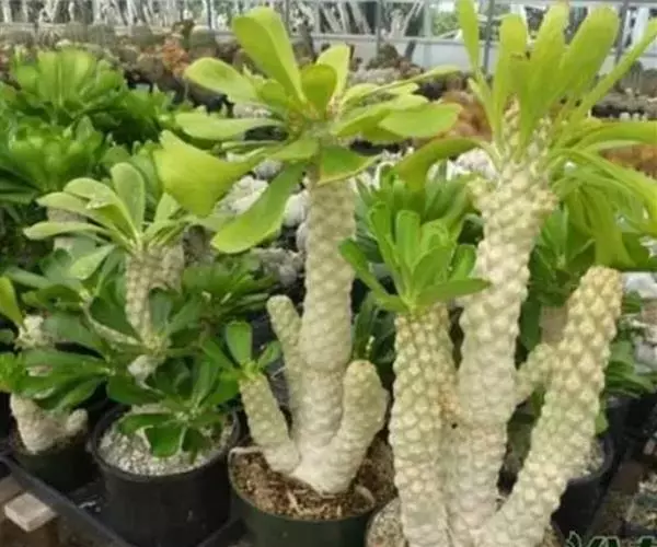 亚属3.大戟亚属Subg. 3. Euphorbia乔木或肉质多桨灌木或蔓生灌木;杯状聚伞花序单生于分枝顶端的叶腋或极少组成复花序;叶早落或仅存于分枝顶部;腺体5枚,无花瓣状附属物;种子常无种阜。种21-25。