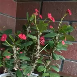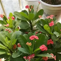虎刺梅:别称铁海棠,是蔓生灌木植物。茎多分枝,长60-100厘米,直径5-10毫米,具纵棱,密生硬…