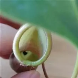 二齿猪笼草与苹果猪笼草杂交种通常更接近苹果猪笼草(Nepenthes ampullaria)的特点,它们往往很小。