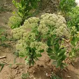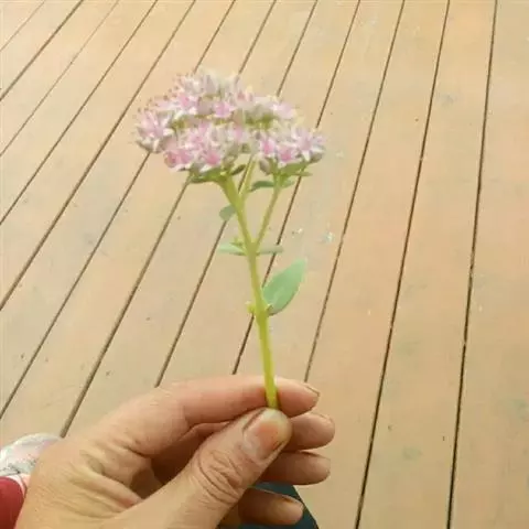 轮叶八宝,又名一代宗《中国植物志》。多年生草本,高40-100cm。须根细。茎直立,不分枝。4叶轮生,少有5叶轮生,下部常为3叶轮生或对生;有柄;叶片长圆状披针形至卵状披针形,长4-8cm,宽2.5-3.5cm,先端急尖,基部楔形,边缘有整齐的疏牙齿,叶下面常带苍白色。聚伞状伞房花序,顶生;花密生,形成半圆球形;苞片卵形;萼片5,三角状卵形,长0.5-1mm,基部稍合生;花瓣5,淡绿色至黄白色,长圆状椭圆形,长3.5-5mm,先端急尖,基部渐狭,分离;雄蕊10,2轮,与花萼对生的稍长于花瓣,与花瓣对生的稍短;鳞片5,线状楔形,长约1mm,先端微缺;心皮5,倒卵形至长圆形,长2.5-5mm,花柱短。蓇葖果。种子狭长圆形,长0.7mm,淡褐色。花期7-8月,果期9月。