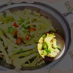 干锅花菜,是湘菜常见的一道菜,以花菜、秀珍菇、蘑菇、青红尖椒为主要食材,…