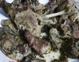2、待汤再烧开后,盖上锅盖,移在微火上煮到肉烂为止。然后将肉捞出,盛在盘内,蘸着调料汁吃。