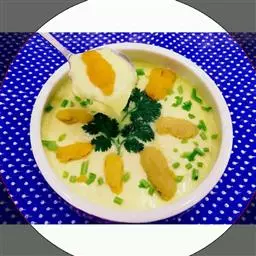 2、把葱末,蒜末,香菜。酱油,味精,胡椒粉,芝麻油,辣椒油等对成调料汁;