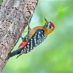 小斑啄木鸟,是啄木鸟科、啄木鸟属的小型鸟类,体长14-18厘米。额和颊白色,头顶雄鸟红色,雌鸟黑色。…