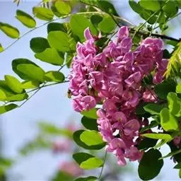 红花刺槐是豆科刺槐属的植物。其干皮深纵裂;枝具托叶刺,羽状复叶互生,叶片卵形或长圆形,…