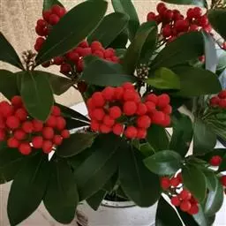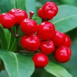常绿灌木或小乔木。叶椭圆形,两端尖。果扁圆形,朱红色;味甜,可食。产自中国东南部,广东地区大量盆栽。