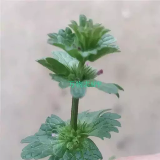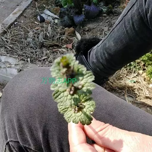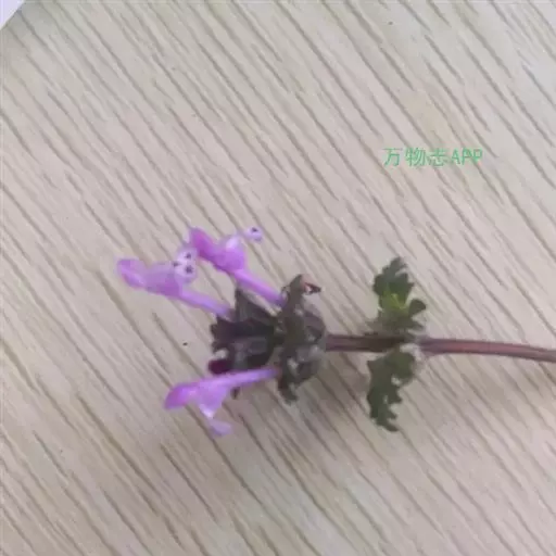 性状鉴别 茎呈方柱形,长5-45cm,表面略带紫色,被稀疏毛茸。叶多皱缩或破碎,完整者展平后呈肾形或圆形,基部心形或圆形,边缘具圆齿或小裂,两面被毛;茎生叶无柄,根出叶具柄。轮伞花序。小坚果长圆形,具3棱,先端截形,褐黑色,表面有白色疣突。质脆。报导微,味苦。